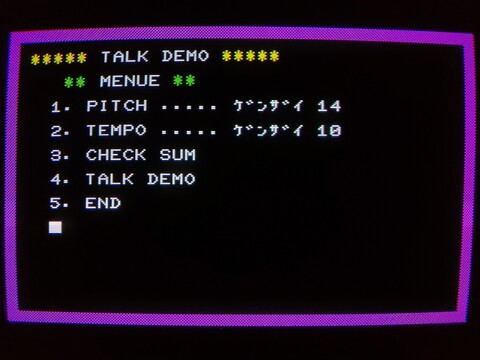 Talk-bun Tool is a tool for the X1 that provides Japanese text to voice synthesis. It doesn't necessarily sound too natural, but creating the Japanese spoken language on an 8-bit PC is relatively easy compared to creating the English spoken language. There are about 100 unique sounds, including blends, and they can be linked together without concern for stress placement. The PC-6001mkII even had the speech generation built into the hardware. 続き⇒