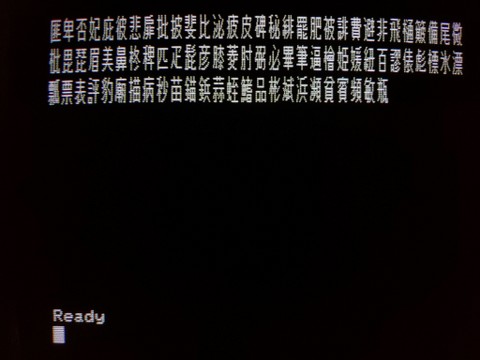 One of the systems came with an unexpected treat – a full set of kanji ROMs. I took those out of the original system and put them into my own. Among the manuals is an appendix listing the in-ROM address of each kanji, so the symbols can be called from BASIC. I haven’t gotten very far yet, but I am trying to make a program that displays all of the kanji beginning with a selected syllable (which is how they are organized).