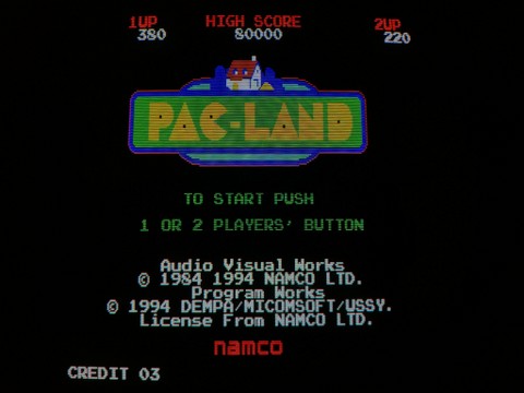 Pac-Land and Pac-mania are great evolutions of the original; Pac-mania staying true to what made the original so loved, but adding a lot of new features, while Pac-Land takes a few key elements from the original, but heads in a bold new direction. Both became treasured games in my youth, although I only played them in the arcades. Here are some scenes from this game.