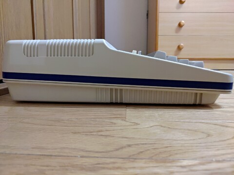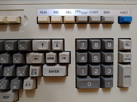 Let's take a closer look at the aesthetics and connections of this machine. First is the main system itself. It has a decidedly unique keyboard. The first thing I noticed quickly was that there is no shift key. You instead go from mode to mode using the dedicated keys. You start in alphanumeric mode, and you can switch to katakana mode or punctuation mode. And although it’s not a mode per se, you can also enter another set of characters and graphic symbols by holding down control. Parts of this system resemble the MZ-700, although the MZ-700 does also have a shift key. The directional arrow keys surrounding the home key is also unusual. But really, aside from having a QWERTY layout, they made this different in almost every way.