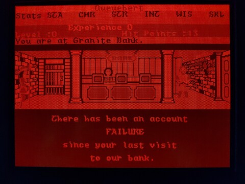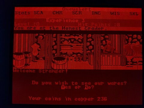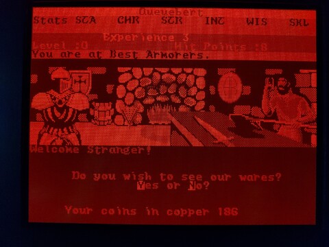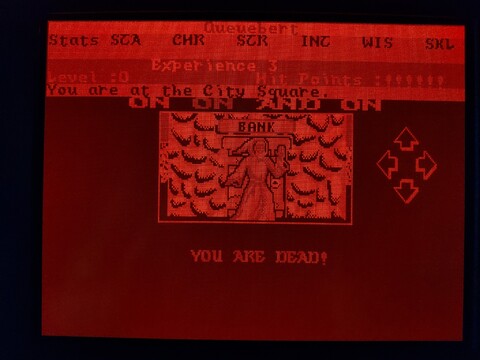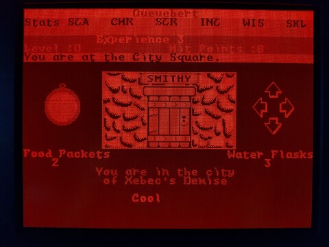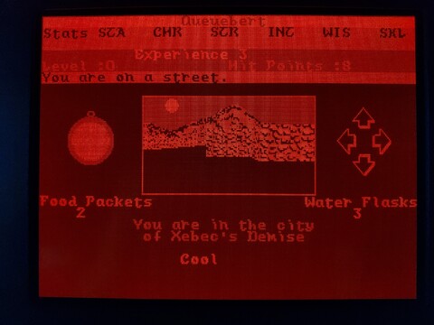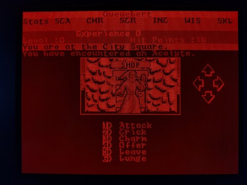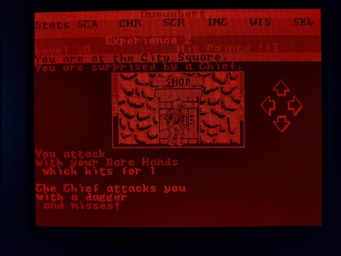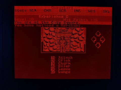 This is another game from my younger years. It’s only got an honorable mention on this blog because I played it on my Toshiba J3100 and it’s a snazzy way to show off the screen. I say it’s from my younger years, but actually I’ve just about never played this game. Maybe a combined total of an hour or so, over several decades. But I’ve played its successor – Alternate Reality: The Dungeon – for thousands upon thousands of hours. The City is an incomplete game, it was intended to be your “home” that was set above The Dungeon. The Dungeon doesn’t really need The City to feel complete, but The City needs The Dungeon. Additionally, the Commodore 64 version has some serious problems, including lack of music. ![]() ![]() ![]() ![]() Still, it has a place in my heart, and I’ve heard the 16-bit versions of The City are a little more complete than the 8-bit versions, so I am going to give it a bit more effort. Actually, as the PC version also lacks sound card support, I know the Amiga version is going to be the best, but it requires an A500 with no upgrades to play. It really is kind of an elusive game for me, although I know some people love the 8-bit version. Anyway, to the game. When you load the game, it asks you if you want the EGA or CGA version. The J3100 plasma screen is driven by EGA, so I chose that. The intro screen showed up, and although the graphics are different, it is the same design as the intro screen for The Dungeon. The image made such a big impression on me back then, it was one of the best images I’d ever seen on the Commodore 64. I like it on the PC, too, but the lack of music stings. It’s followed by a starfield animation with credits and a song with lyrics, but of course the song is missing in this version. ![]() ![]() ![]() After the intro, you are presented with options for starting the game – start a new character, start a temporary character, or resume an existing character. I went with a temporary character. Enter your name, confirm your name, and pass through a gate with rolling numbers that determine your stats and starting bankroll. ![]() ![]() You’re then dumped off around the City Square, where your adventure begins. So what do you do first? Whatever you want! This is an early example of an open-world game. A little too open, perhaps? The City lacks quests, while The Dungeon did not. Just explore the area, visit the establishments, and build up your character slowly. Looking around the city, you see the sun, which changes positions based on the time of day. There is also rain and possibly other weather effects, which are absent in The Dungeon, so that’s one thing The City has going for it. There are many walls and doors, the doors often leading to establishments. ![]() ![]() The establishments are among the expected standards for an RPG, but I feel this game offers some unexpected twists. For example, you can get a job at an establishment to earn extra money. But the jobs may have stat requirements, so you can’t just get any job, but one suited to your character. You can bargain with shopkeepers to get better prices, but if you lowball them, they may kick you out. ![]() ![]() ![]() ![]() To level up, you have to kill baddies. But it’s far more likely you will be killed by baddies. The game is brutal in the early levels. It also has a stricter moral system than most, where killing humans, evil or good, is considered immoral, so you’re not supposed to go around fighting everyone, anyway. Proceed building your character with caution. Here are some examples of lifeforms you’ll encounter early on in the game. ![]() ![]() ![]() ![]() ![]() ![]() So it turns out my level 0 character wasn’t quite ready to deal with an arch-mage. Who knew? You may have noticed, but one thing about playing this game on this computer is that I can’t see my stats. I’m not exactly sure why, it would make sense if the game were SVGA, but since it’s EGA, there should be a one-to-one color mapping for the screen. Maybe my monitor ignores the intensity factor, allowing for only eight shades of orange? It’s a little hard to tell. The PC version of the game came on three disks – game disk, CGA graphics disk, and EGA graphics disk. It included a manual and a map printed on nice quality paper made to resemble parchment. The C64 version was a little more accurate, this looks comparatively bleached, but still nice. ![]() ![]() ![]() ![]() Anyway, I’ll end the introduction here. I could probably go on for pages about the details of The Dungeon and how the game was originally planned to be a huge series, but that’s kinda beyond the scope of this blog. |