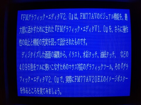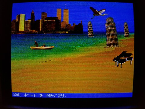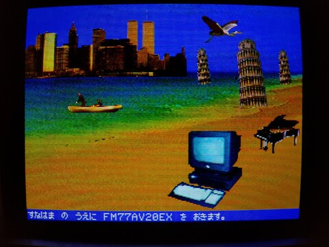 This final branch of the demo disk is probably the most interesting to me. I love games, but I’m also really interested in 8-bit productivity applications. This highlights some of the productivity apps available for this system. ![]() First up is Graphic Editor. It’s a ineloquent version of Photoshop, but then again, Photoshop 1 was also an ineloquent version of Photoshop! Actually I can’t judge its eloquency, but the demonstration was definitely over the top! This reminds me of an “examples of bad photoshop jobs” web page. But I think the reason was probably just limitation of technology at the time. It was 1987 on an 8-bit machine, after all! ![]() ![]() ![]() ![]() ![]() ![]() ![]() ![]() ![]() ![]() ![]() I mean, okay, most of it can be explained. buildings in the background, sure. Bird in the sky and kayak on the water, only natural. I know I have seen elegant images of pianos on the beach, probably in music videos and the like. I’ll even give it the computer. Perhaps they were trying to make a statement, the computer looks as elegant on a beach as the piano, or perhaps it was just a cheeky placement of their product.; either way is fine. The three Leaning Towers of Pisa, though?! That’s just jumping the couch! Three! Next up is some animation software. Now, I don’t know what potential this software has. The demo is certainly unimpressive, but it might have good applications? I mean, it has the NTSC converter/superimpose/VCR output card as an option, it might not be too far a stretch that this could be used in a budget production system to create some simple multimedia animations to go with other video content. But I am not sure you would jump to such a conclusion by seeing this demo. ![]() ![]() ![]() ![]() ![]() ![]() ![]() ![]() ![]() ![]() It establishes the three shapes as objects and seemingly automatically morphs from one object to the next as it goes across the screen. Beautiful, isn’t it? Third is a demo of FM Teleact/FM Communication, which is a simulation of dialing into a Japanese data service/BBS system. I probably missed out by never doing this when I was a teen. But not only did I not have a modem, I didn’t really even have the concept of computers accessing remote services at the time. I probably would have enjoyed it. ![]() ![]() ![]() ![]() ![]() ![]() ![]() ![]() ![]() The first screen introduces the software, and the second screen is the main menu when you launch the software, allowing you to connect to or to set up your services. The following three screens are all setup screens, just to show what options were available. Finally, in the sixth screen, we connect and log in. The seventh screen shows us a menu of services, from which 3 is selected – a bulletin board system. On the eighth screen is a list of options for interacting with the bulletin board, you can manage your profile, engage in free talk, talk about hobbies, travel, and books, etc. The “user” chooses 9, a bulletin board to discuss computers and word processors. Beneath that, a list of posts are displayed. The user opens one and reads some information about advanced features of the FM77AV20EX and logs out. Probably don’t want to stay connected too long, I imagine getting on these services was quite expensive in Japan in the 80s! Finally, and this is the most interesting to me, is FM Japanese Sheet, an application similar to a spreadsheet that allows your to enter user-defined columns of data and manipulate the data using a GUI. I really wish I could find a copy of this and try using it! ![]() ![]() ![]() And this concludes this series on highlights of the FM77AV20EX system disk. Now to find something to do with my newfound free time! |