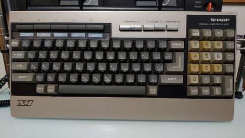 This is the most recent addition, the Sharp X1-D. The D is, I assume, for disk, as opposed to tape, and it has a built-in floppy drive. The machine is an older, less-capable version of my Sharp X1 Turbo Z (the black machine shown sitting above the X1-D in the picture above). It has nothing to offer that the Z cannot do, and the Z can do so much more, and has the ability to do it better. This machine I got for looks alone.