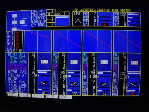 Sharp X1 music tools. It includes a tone creator, music composer, music player with a visualization, and a program to link your creations into, if I recall correctly, your programs. It is one of few programs that was made available on 5.25″ HD floppy disks for the system, most used 5.25″ DD disks because it was the lowest common denominator in the X1 series. It also ran at 640×400, which was not so unusual because there were two generations of their systems that could use this higher resolution. ![]() If you thought my art was crappy, I’m far less talented in music. First was the tone creator. To create tones, I think you need some particular kind of understanding of math, or at least an understanding of how to work with the building blocks of synthesized sound. In any event, I had no idea what I was doing. ![]() ![]() The music compisition went a little better, but not much. I was able to generate the notes necessary for a single instrument rendition of Mary had a Little Lamb, but if I tried to add a bass line to it, it refused to play? It probably explains well in the manual, it’s very detailed, but I don’t think this is really ever going to be my strong point! ![]() ![]() This is no fault of the X1 Turbo (Z), though. They have great sound, quite sophisticated for an 8-bit computer. It produces music by either PSG, FM, or there are even some games that use both. The music player is pretty cool. Too bad it has such a small stock library but I guess they were counting on you making your own music! I imagine there were magazines with type-in songs, BBSes with downloadable songs, etc. I’m probably a tad late for all that. ![]() ![]() ![]() There were around ten default songs, most recognizably “Invisible Touch” by Phil Collins. The other song I uploaded, Oteyoman, is a kind of funky song. The others that I’ve listened to tend to be more mellow songs, undoubtedly to appease their conservative user base. |