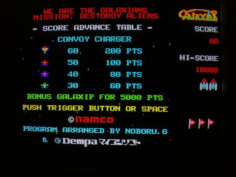 Another classic for the evening – Galaxian. The X1 really shines with arcade ports, they have such crisp graphics.