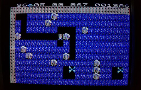 Actually, there’s one big short coming with this port, Or at least there’s something I can’t quite figure out. I can change the starting cave, I can change the difficulty level, and I can change the number of players, but I can’t seem to set the game to use the joystick! Cave D is as far as I was able to get using the keyboard. Those butterflies won’t stand still and die while I stumble with these controls.