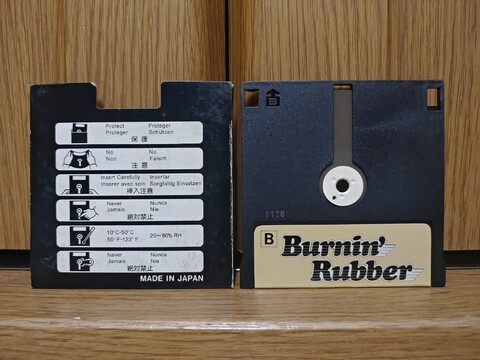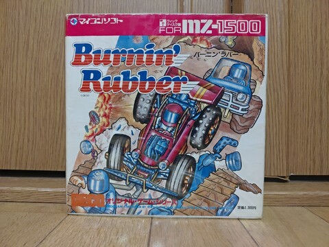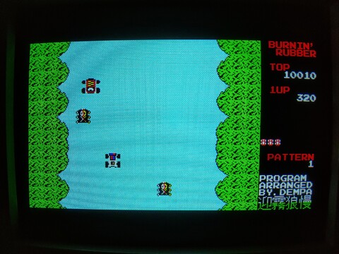 Burnin' Rubber was apparently an arcade game? I'd never heard of it before. This MZ-1500 port is the first time I'd ever played it. I assumed it was a simple racing game, but the car is capable of big hops. And you'll need them! You can use them for fun to get over and pass other cars, but there are also large chunks of road that have been torn up, so jumping is your only good option here. There are no pictures of me jumping over the obstacles because there's no pause feature and I couldn't coordinate single-handed play well enough to take a halfway decent picture. It's pretty fun!