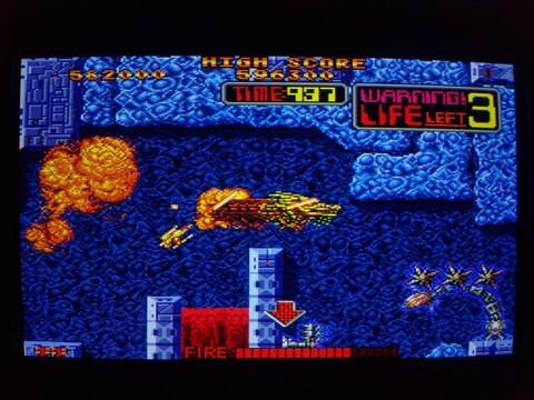 It may look it, but it's not exactly a straightforward shooter. The game doesn't force you to advance, nor does it place swarms of enemies coming at you. Rather, you control the pace and move around freely in a 360-degree environment, although there are a lot of environmental obstacles that guide you to the right path. Enemies certainly abound, but it's not a feeling of a never-ending wave of things to shoot, they show up, you deal with them, then you can take a breather and move on. The gameplay is perhaps most similar to Atomic Robo Kid, although I don't know how popular a game that was, so it may not give much of a point of reference.