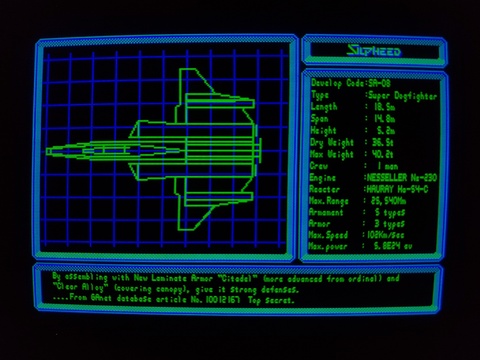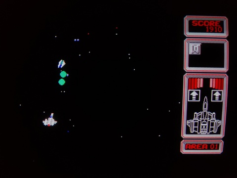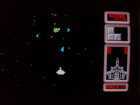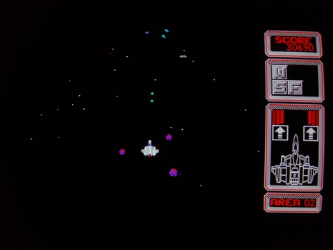 Silpheed is a well done shoot-em up game, something that can be a bit difficult to pull off on Japanese 8-bit computers because most of them lacked the ability to do vertical scrolling in hardware. Most games in this genre that I've encountered on Japanese 8-bit platforms are very simple, never-ending waves of several designs of basic enemy ships, atop a black background, maybe with stars. Not that it's bad, but simple.