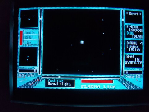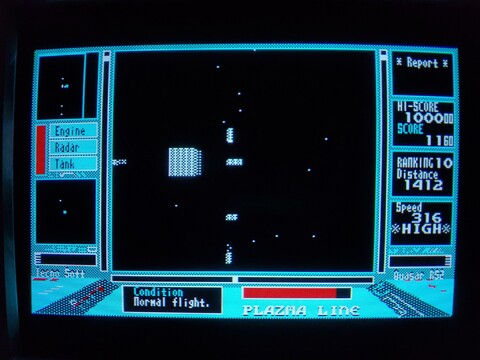 This is a fun space-racing game. Your perspective is from the cockpit of your spacecraft and you have to make your way to the victory line faster than your opponents, while avoiding space debris. ![]() ![]() ![]() ![]() ![]() ![]() ![]() ![]() This game was released for many platforms. But one most unusual thing is that this game is specifically for an SR-class PC-6001 series computer. It won't load on a PC-6001mkII. That's pretty rare. It's a really nice touch to have some background music while you play. I got this as part of a huge lot of PC-6601SR items. Whereas most games had cases with covers, this was just a loose tape unfortunately. ![]() |