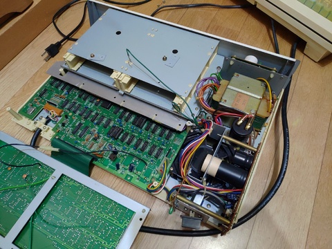 I had come this far and had even removed the upper PCB to reveal the bottom one, but I sort of lost my nerve about taking the expansion bays off because everything seemed delicately connected and I didn't want to cause it more problems than I already had with the power button fiasco, so this is as much as I photographed of this odd beast.