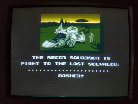 Xevious: Fardraut Saga is two games in one: an updated version of the original Xevious, and a sequel. You choose which version you want to play at the opening menu, which only appears for a few seconds before showing introductions to each of the games in turn. ![]() ![]() ![]() ![]() ![]() ![]() ![]() ![]() ![]() ![]() ![]() ![]() The original is primarily a graphical update. This is definitely the nicest version of Xevious I've ever come across. I only know of two versions released for analog RGB - the MZ-2500 and MSX2 versions. But the MZ-2500 relies on the palette board, which only allows for 16 colors of 4096. Don't get me wrong, you can do a lot with 16 of 4096 colors, and the MZ-2500 version is nice-looking compared to most version, but this one doesn't have a particular limitation of 16 color, so they could go all out with the shading. In addition, the scrolling and movement of both your ship and the enemies is superior on the MSX2. ![]() ![]() ![]() ![]() ![]() ![]() ![]() There is a lot of visual similarity in the sequel, but there are also a lot of changes. For starters, you can choose your ship. There are advantages and disadvantages to each, but the big one may be best suited for beginners. The game also has background music, and each ship also has its own background music. While flying around, you can find upgrades. B gives you super-charged bombs that can destroy a wider radius of ground targets, while S grants you a very short-lasting shield. Some enemy types and attack styles are also different. The maps themselves, while sharing a similar aesthetic, are redesigned. ![]() ![]() ![]() ![]() ![]() ![]() ![]() ![]() ![]() I had never even heard of this game before, but after finding it on Mercari just about a month ago, I started noticing it here and there on the usual for-sale sites. This one is basically in nice condition. The included poster doubles as the manual on the reverse side. ![]() ![]() ![]() ![]() ![]() ![]() |