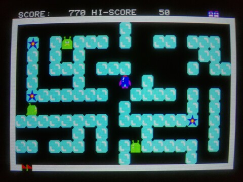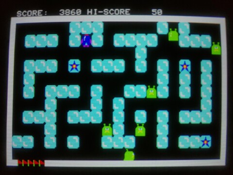 I recently reviewed a game called Little Gang, also for the FM-7, which was a clone of Mappy. This is a clone of Pengo. It's pretty good, they didn't seem to skip on much detail. You can still get the Snowbees while they're in the ice blocks, you can still get a big bonus for lining up the three special blocks without using a wall (or a smaller bonus if you have to use a wall), and you can still kick the wall to cause a vibration that stuns any Snowbees that are hanging around by that wall. Solid! ![]() ![]() ![]() ![]() ![]() ![]() ![]() ![]() ![]() And the cover art is nicely done, too! ![]() ![]() ![]() |