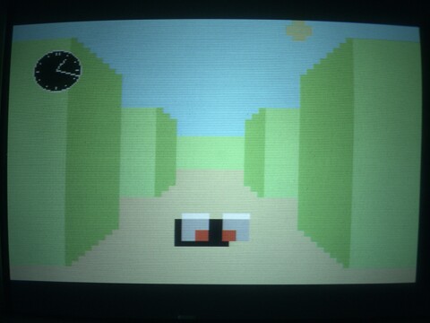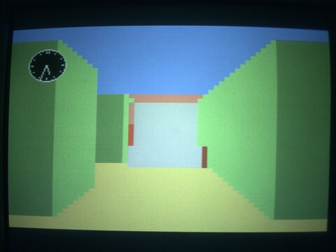 Iriegas for MSX is a 3D maze escape type game. You hear a constant humming sound as you play, and it increases in speed as you get closer to something, an enemy, I believe, but I haven't been able to ascertain that it couldn't be something else. The sun is visible and it can get dark. There are night-vision goggles in the first level (don't know if they are available elsewhere or not). You can escape the maze and go on to the next.