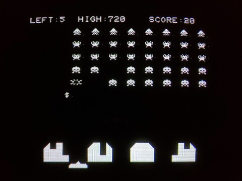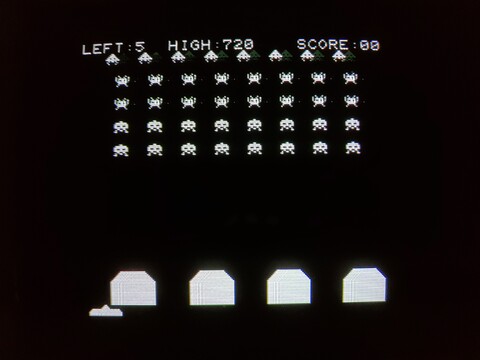 I recently saw a commercially released JR-100 game for the first time ever. I don't think the system was a smashing success by any means, but whereas I'd seen... who knows, 30 or 40 titles for the JR-200, which also wasn't resoundingly successful, the total of JR-100 games I've seen is now at a whopping 1. Somewhat predictably, it's a Hudson Soft game. They were the lifeline to the first-gen Pasopia system and generally didn't seem to mind helping out the less popular platforms if they could turn any kind of a profit. Also unsurprisingly (considering the popularity of the game in the arcades at the time), it's a Space Invaders clone, called Invader. A little bit surprisingly, though, it appeared unopened. Whether it really was unopened or not, who knows, because clearly I was able to get the tape out of the case without breaking the manufacturer seal. But it's in good condition, in any event. ![]() ![]() ![]() The gameplay is familiar and the graphics aren't really anything special, but I am sure if you owned a JR-100, you were happy to have this game. The shields were probably created using the built-in graphical glyphs, but the invaders and your artillery base, both in their standard and exploded forms, seem to have been customized using the limited programmable character generator. ![]() ![]() ![]() ![]() ![]() ![]() ![]() ![]() ![]() ![]() |