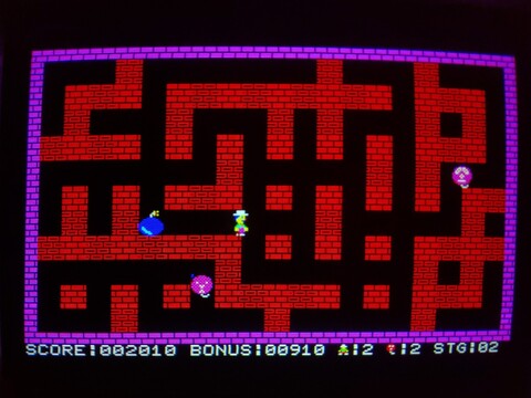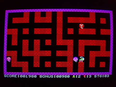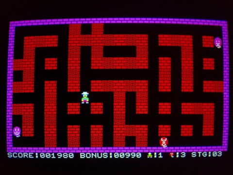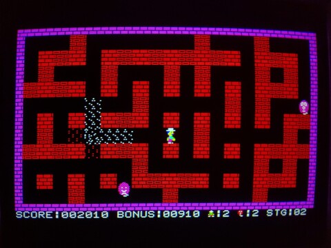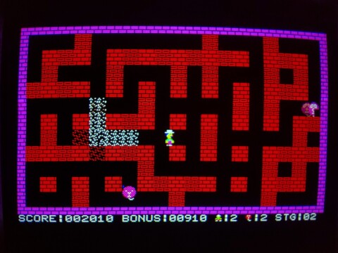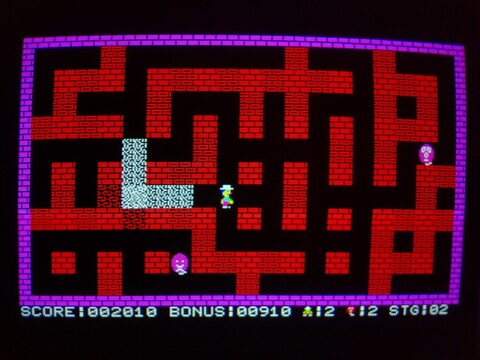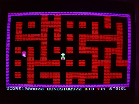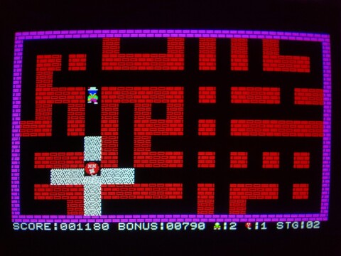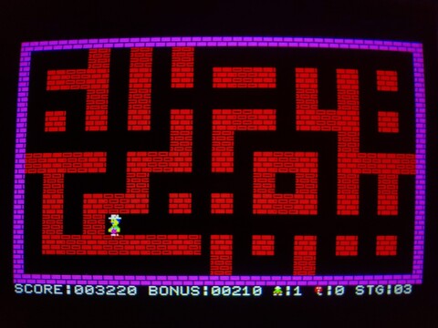 I recently added an overview of one of the earliest Bomber Man games, for the MZ-700. Today I have an overview of the same game for the Multi8. The biggest difference by far is that the Multi8 has proper graphics modes and can shuffle its (fairly limited) palette anywhere it wants on the screen, as opposed to the MZ-700s 8x8 pre-defined, single-color characters on top of a global background color.