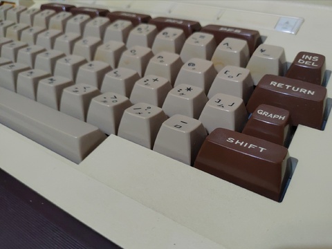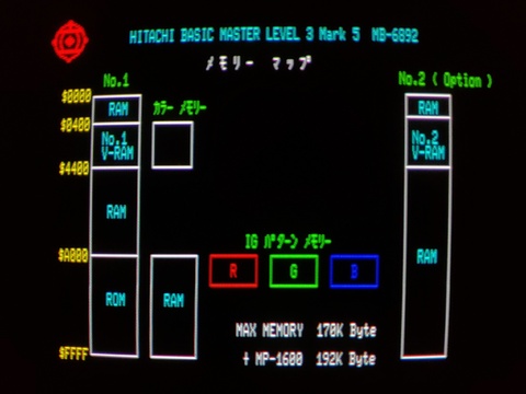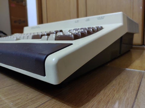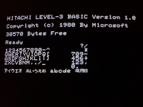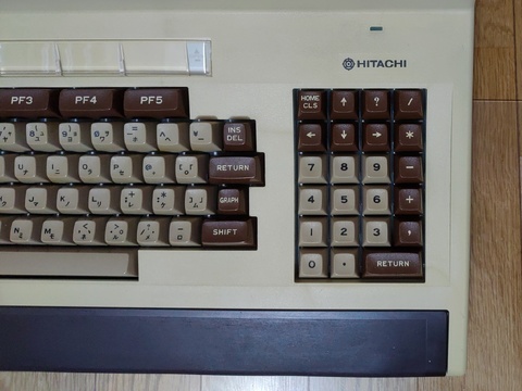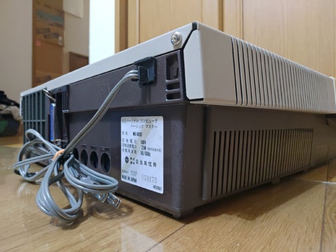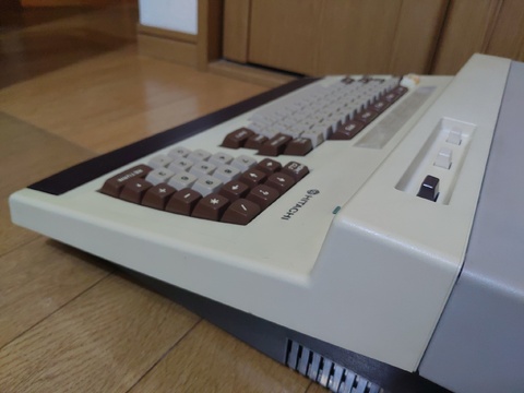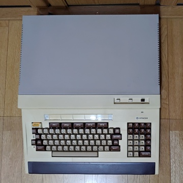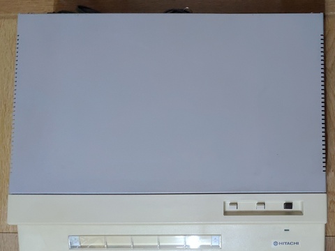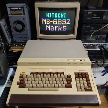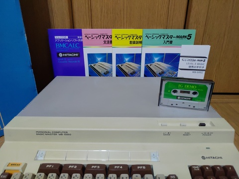 Finally, after about six years of collecting, I got a Hitachi Basic Master series computer. It has a massive footprint, designed to have the monitor placed on top of it. It came in its original box, and it was shipped to me in another box (which I am thankful for!), so in order to play with it, I had to prepare to have three Basic Master-sized items out at the same time, which is no easy task in my environment. But there's no denying, it's a gorgeous machine!