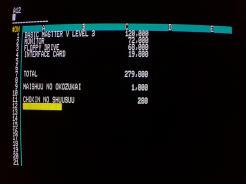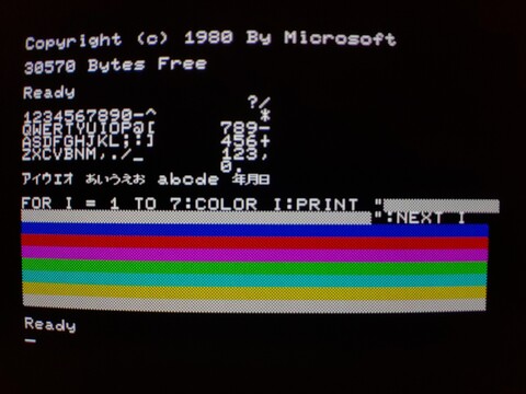 The machine booted up without a fuss and I was able to test the keyboard, run the system demo tape, and have a go at creating a mini spreadsheet using the system utilities. As the Mark5 had a built-in PCG, it was a pretty graphically capable system. It displays some dithering, so although it can only display 8 colors, they do a decent job of creating the illusion of a wider palette.
