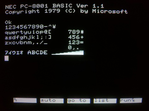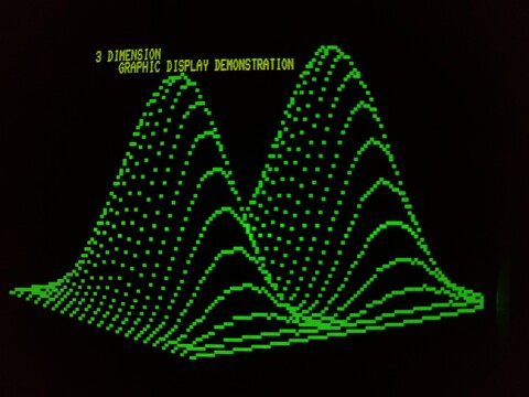 The demo tape includes a variety of programs that show off the potential of the PC-8001. This 3D-rendered object is no doubt impressive for 1979, but the draw time was something like ten minutes. Pretty cool, though!