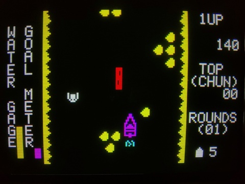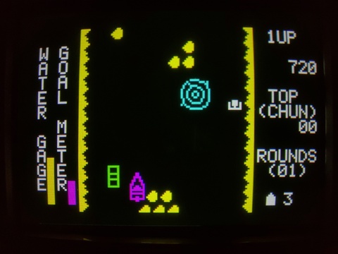 The machine booted up fine and the keyboard worked well, so I took the opportunity to play River Rescue. Save people from drowning in the river, but it's quite easy to accidentally run them over with your boat, resulting in death.