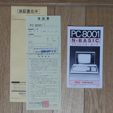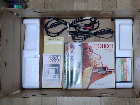 I recently picked up a complete-in-box PC-8001. It consisted of the computer, the instruction manuals, a compact BASIC reference pamphlet, monochrome video cable, CMT cable, system demo tape, and the manufacturer's warranty. It was all in great condition.