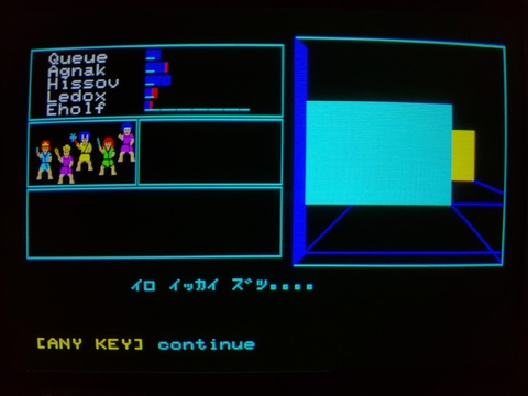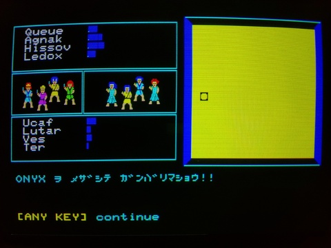 The Black Onyx is among the first western-style RPGs to be developed in Japan, produced by BPS, with development led by Henk Rogers. It was ported to multiple systems, mostly the usual suspects like X1, PC-8801, FM-7, and MSX, but also Famicom, Sega SG-1000 (on a My Card), and this one - the PC-8001mkIISR. Very few games actually demanded an SR, usually games are developed for the vanilla PC-8001 or more advanced and widely available PC-8001mkII. The only use of the FM sound that I've noticed so far is the title screen song. It will not load on a PC-8001mkII, so maybe it is leveraging some other technology available to the SR model in particular. It seems to use a full eight color palette during ganeplay. In most of the implementations I've run across, the game is on cassette tape and uses both sides. There is a "Rollem" side that you use to generate your characters. You do get to customize your characters' appearances, but the overall design is pretty simple. ![]() After that, you load the "Onyx Game" side and begin your adventure. Upon loading, you are met with the title screen, where you can elect to play the title screen music or jump straight into the game. Once you choose the music, you seem to be locked into it until the music finishes. ![]() Once you choose to start the game, you are placed into the top level of the maze and you can run into some enemies as well as other dwellers who may or may not be open to joining your party. There are also a variety of establishments where you can prepare for your dungeon-crawling adventure. ![]() ![]() ![]() ![]() ![]() ![]() ![]() ![]() ![]() ![]() ![]() ![]() You can find entrances to the various dungeons around the ground level, and the enemies waiting beneath have ramped-up difficulty, so be ready! There's no visual entrance to the dungeons, you have to pay attention to the captions as you traverse the grid. ![]() ![]() The game box and manuals were in quite good condition after these 40-odd years. ![]() ![]() ![]() ![]() ![]() ![]() |