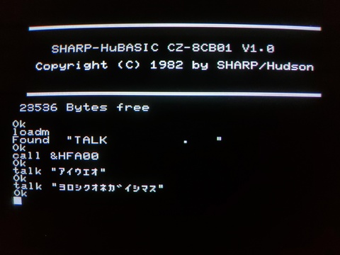 Talk-bun Tool is a tool for the X1 that provides Japanese text to voice synthesis. It doesn't necessarily sound too natural, but creating the Japanese spoken language on an 8-bit PC is relatively easy compared to creating the English spoken language. There are about 100 unique sounds, including blends, and they can be linked together without concern for stress placement. The PC-6001mkII even had the speech generation built into the hardware.