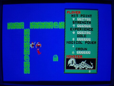 Dragon Slayer on the FM-7 is an early attempt at an action RPG. Everything, including battle, takes place in real time. It has some interesting mechanics and I must say I've never seen another game quite like it. I haven't played too far into the game, so anything said is based on that limited experience.