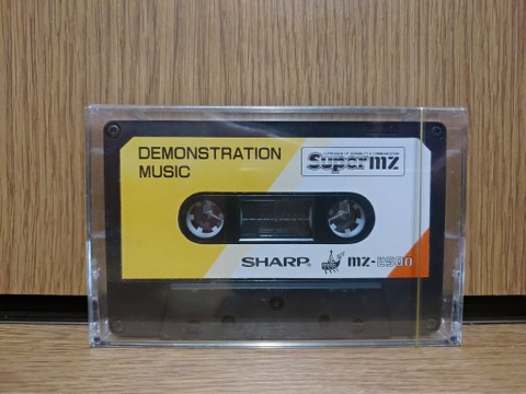 The tape is labeled as being demonstration music. The MZ-2500 native mode doesn’t seem to use tapes for data, it tries to play the audio through the internal speaker, which doesn’t happen in MZ-2000 or MZ-80B mode, so I guess it doubles as a bonus audio tape player, or maybe there is software for editing music available and the tape drive is a handy integrated recording device?