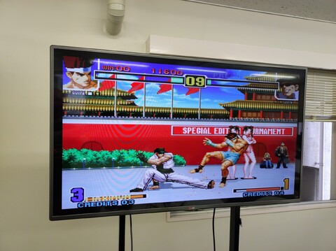 Greg came in with his MiSTer and displayed some Street Fighter II with the thumping subwoofer in the venue-provided sound system. Street Fighter II in action turns out to be pretty hard to photograph clearly.