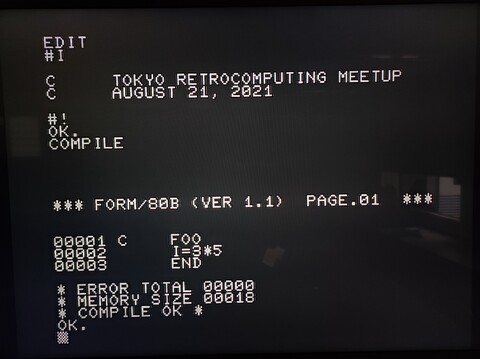 And Justin was the hero of the meetup, because he managed to get a program to compile in the MZ-80B FORTRAN program – Tiny FORTRAN Form. It didn’t have any output but hey, it compiled!
