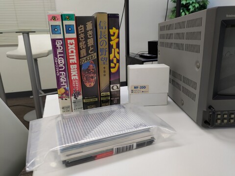 We convened for another retro rendezvous in Kayabacho. Sean arrived first (surprise!) with his SMC-777C. This was his third time bringing this machine, but this time he also brought his recently-procured disk stash, mostly copies included in a system he recently acquired. The stash included compilations totaling around 20 games, as well as CP/M, system utilities, and a word processor program. The games in the boxes were MZ-2500 games for Saburo to copy.