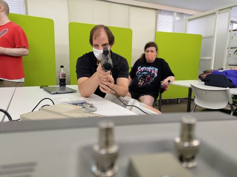 And Tom brought in a light gun and several light gun games to test on the PVM. Nobody in the room can really shoot besides Michelle, but it at least seemed to work!