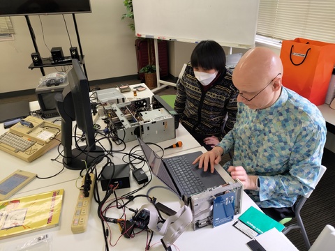 We met up for a 52nd time in our usual place. Sean brought two things with two missions in mind: a modest collection of X1 D 3" games for dumping, and a Hitachi MB-H3 (an MSX2 computer) for repairing the P and @ keys. It seems half the meetup members threw in their hands to help with the P and @ keys, and in the end, we got the P key working! The MB-H3 is notable for having handwriting recognition, which, while a little quirky, actually works pretty well. ![]() ![]() ![]() ![]() Tom hauled in a boatload of MSX games along with an MSX computer for some unusual gaming. ![]() ![]() ![]() ![]() Saburo and Joseph worked together on dumping the X1 D games. Saburo took on the tedious task of wiping mold off of most of the disks. in the end, all games could be dumped except Dig Dug, even though the game works fine on a real X1 D. ![]() ![]() ![]() ![]() ![]() Curt, Andy, and David were among those who worked on the MSX2 machine with its wonky keys. In the end, the big win was Andy running a wire to bridge two points that fell victim to corrosion. ![]() ![]() ![]() Speaking of David, he brought in a self-professed "beta" version of a ZX80 replica. ![]() Greg took in his TK-85 which spent its time sitting on a remote desk. But he also brought in an MSX with a couple of new games, and a joystick in need of repair. He also brought in a book scanner and undertook the job of scanning the Tomy Pyuta manual. New member Daniel spent some time checking out the activities. ![]() ![]() ![]() ![]() ![]() ![]() Sven spent most of his time socializing and photographing the proceedings instead of actual work, but he did manage to track down the pin assignment for a DVI to HDMI adapter for his Amiga 1200 flicker fixer. ![]() ![]() |