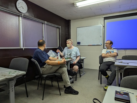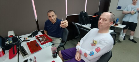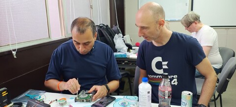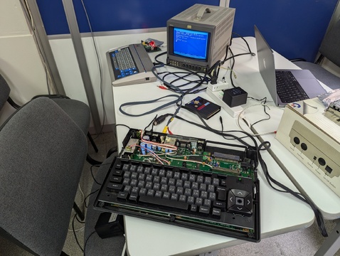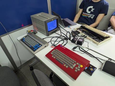 Meetup #58 marked our first attempt at finding a new venue. The room was a little rough, even compared to our previous venue, but wasn't bad. The really harsh part was being on the 4th floor without an elevator. Without computer equipment, it's not so bad, but lugging monitors and systems upstairs, and worse, downstairs, leaves us hoping we can find something a bit more convenient. But it was a good meetup nonetheless. Sean took his National JR-200 and Sega SC-3000, as well as the 9" PVM (not having a locker is pretty inconvenient, we now have to bring the monitor to and from each meetup). The JR-200 was nice and light, and the SC-3000 was in need of repair. Games were played on the JR-200, and the SC-3000 was indeed successfully repaired. ![]() ![]() ![]() ![]() ![]() ![]() ![]() David B. brought in a Sony MSX2 machine in need of repair. David K. assisted in the analysis. Actually, upon opening the machine, it became pretty clear what the problem was. It seems the previous owner had a go at adding his own... shielding? insulation? (because you want to keep the ICs as warm as possible?) and removing that material allowed the machine to spring back to life. Two for two, this month! ![]() ![]() ![]() ![]() ![]() Sven had his C64 Reloaded for troubleshooting. It would load up to the BASIC screen, and BASIC was functional, but loading games resulted in failure. Edoardo offered his expert advice, and Sean threw in a few non-expert suggestions, but it just wasn't cooperating. ![]() ![]() ![]() ![]() ![]() ![]() ![]() ![]() Tom discussed the feasibility of combining two game controllers into one, in an effort to make playing a particular MSX game more manageable. He brought in three potential controllers to see which might be fit for the task. ![]() ![]() ![]() Curt had his TK-85, perhaps in anticipation of not wanting to lug a lot of heavy equipment up four flights of stairs. He did some poking and prodding at it. ![]() ![]() ![]() ![]() ![]() |