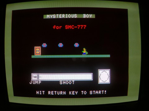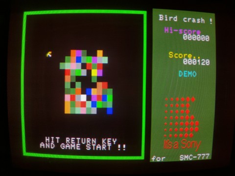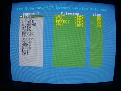 Under the hood, the first-gen SMC-777 may seem a bit underpowered compared to its peers, if anything. it’s got a Z-80 CPU and 64KB of RAM but only 32KB of graphic memory. It was limited to 16 colors in 320×200 or only 4 colors in 640×200. Like the MZ-2500, though, there was a “palette board” released for the system, expanding the color display to 4096 colors. Perhaps sensing that everyone would want that, Sony added the palette board functionality as standard to the SMC-777C. I didn’t realize that when I was debating the purchase of one of these computers, but I am quite lucky I ended up with a C model.
