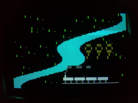 Another game I’ve got a fondness for is called Wild Swat. You play as a police car that is chasing and trying to shoot a motorcyclist while avoiding traffic. Avoiding the traffic seemed like a tremendously difficult task at first, but the game actually gives you quite a bit of leniency as long as you don’t hit them with the front of your car. This might be an early example of having a “hit box”. The challenging aspect is hitting the motorcyclist, you have to be very precise. But the actual problem with the game is that the course is very short. I wish navigating the traffic were a little easier but the traffic pattern random. As it is, the pattern repeats after about 20 seconds so you get a good sense of where you should be after playing for a bit.