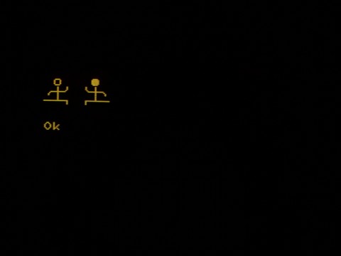 The game is nonsensically colored, where everything in the same section of the screen is the same colors, so cars change color as you pass them. I suppose they were just messing around with color and they figured this was good enough. When you hit another car, the very simple sound generator creates a loud noise and the screen presents a garbled set of colors and characters I suppose to simulate the crash. It’s kind of an interesting visual effect. When you quit the game you are treated to a goofy animation and dumped back into BASIC.