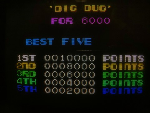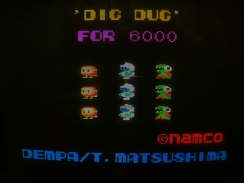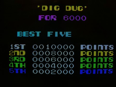 The title and high score screens have some noticeable differences, for example the 8-color mode completely lacks orange, and the 15-color mode has differently mapped shades of blue, and although it came out a bit subtle in the photo, two shades of green (the 3rd and 4th high scores). But the major difference is in gameplay. The colors in 15-color mode are more natural because 8-color mode doesn’t output brown. The 15-color mode matches the colors output over composite on the PC-6001mkII (non-SR version).