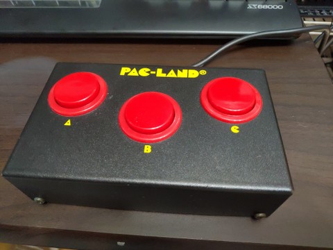 I have been after this controller for quite a while. It’s a dedicated Pac-Land controller designed to mimic the arcade controls on your X68000. It uses three buttons, defaulting to: left, jump, and right. These are configurable in the in-game menu. This controller was included with the game originally, but is not required to play. However, you may find some parts difficult if you are using a regular joystick, and perhaps nearly impossible with a gamepad.