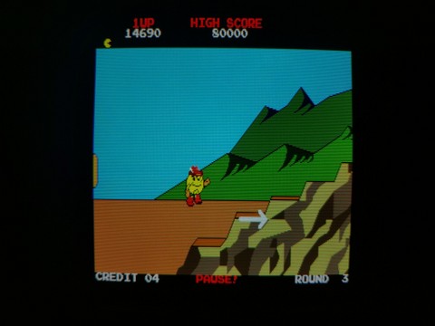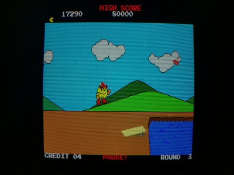 Pac-Land and Pac-mania are great evolutions of the original; Pac-mania staying true to what made the original so loved, but adding a lot of new features, while Pac-Land takes a few key elements from the original, but heads in a bold new direction. Both became treasured games in my youth, although I only played them in the arcades. Here are some scenes from this game.