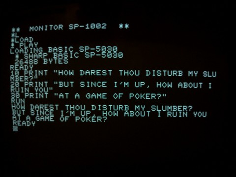 The keyboard works, the tapes all work, but something isn’t quite right… oh! That’s right. The monitor is black and white but it’s supposed to be green. That must be why I can’t catch a break in the poker game. How do I enable green mode… aha! Here we are.