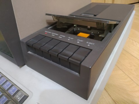 The seller included a short laundry list of minor problems but so far none of them have actually happened on my watch. In fact, it seems to be working quite well, with the only noticeable problem being that the tape deck controls are kinda stiff. I sometimes have to press play, rewind, or fast forward a couple of times for it to trigger. No big deal. It came with three tapes: BASIC (essential!), Poker (playable! but with a terrible fortune telling app on the back), and Montage (where you try to remember the details of the face of a criminal and the answer the police-computer’s questions about it in an attempt to recreate the face, which is really boring, yet it seems someone actually sold this game).