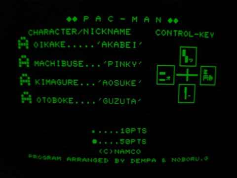 The result is that the game keys are often laid out terribly. Pac-Man keys are all on the same row, with N・comma・forward-slash・first blue key controlling left, right, up, and down, respectively. I mean, you can probably get used to this, but it’s not very natural. And another quirk, if you don’t press S to start, the game will automatically start for you after the mini demo. This doesn’t happen on the MZ-700.