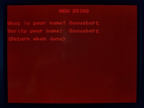 After the intro, you are presented with options for starting the game – start a new character, start a temporary character, or resume an existing character. I went with a temporary character. Enter your name, confirm your name, and pass through a gate with rolling numbers that determine your stats and starting bankroll.