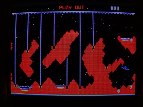 The object is to bomb targets to make the laser beams disappear, allowing you to proceed to the next target. Bomb all the targets and land your spacecraft to claim victory! I think. I haven’t beat level one yet.
