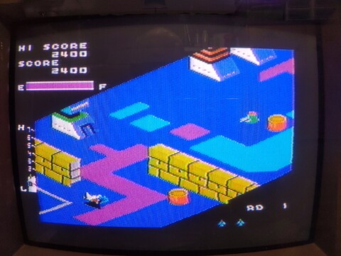 So how are the games? Well, the three that I’ve tried are pretty fun. I’ll speak more about them later, but here are some sample screen shots from Monaco GP (picture 1), Zippy Race (pictures 2 and 3), and Zaxxon (pictures 4 and 5). For a fairly rudimentary system, the games seem quite well done. Monaco GP is a street car racing game. Zippy Race is a motorcycle race that, most interestingly to me, has you race in two different perspectives. And of course Zaxxon is a true classic. Fantastic!