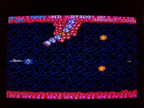 I’m not much of a shmup (shoot ’em up, a term I wouldn’t have known if not for my friend Chris, the shmup master) kind of guy, but starting with this game, the X68000 is starting to change my mind. When the title screen loaded, it was already a bit breathtaking, with its crisp display and vibrant colors.