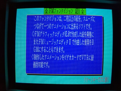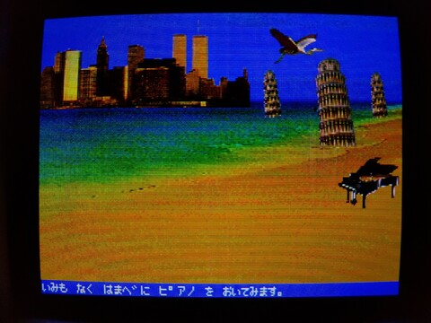 This final branch of the demo disk is probably the most interesting to me. I love games, but I’m also really interested in 8-bit productivity applications. This highlights some of the productivity apps available for this system. ![]() First up is Graphic Editor. It’s a ineloquent version of Photoshop, but then again, Photoshop 1 was also an ineloquent version of Photoshop! Actually I can’t judge its eloquency, but the demonstration was definitely over the top! This reminds me of an “examples of bad photoshop jobs” web page. But I think the reason was probably just limitation of technology at the time. It was 1987 on an 8-bit machine, after all! ![]() ![]() ![]() ![]() ![]() ![]() ![]() ![]() ![]() ![]() ![]() I mean, okay, most of it can be explained. buildings in the background, sure. Bird in the sky and kayak on the water, only natural. I know I have seen elegant images of pianos on the beach, probably in music videos and the like. I’ll even give it the computer. Perhaps they were trying to make a statement, the computer looks as elegant on a beach as the piano, or perhaps it was just a cheeky placement of their product.; either way is fine. The three Leaning Towers of Pisa, though?! That’s just jumping the couch! Three! Next up is some animation software. Now, I don’t know what potential this software has. The demo is certainly unimpressive, but it might have good applications? I mean, it has the NTSC converter/superimpose/VCR output card as an option, it might not be too far a stretch that this could be used in a budget production system to create some simple multimedia animations to go with other video content. But I am not sure you would jump to such a conclusion by seeing this demo. ![]() ![]() ![]() ![]() ![]() ![]() ![]() ![]() ![]() ![]() It establishes the three shapes as objects and seemingly automatically morphs from one object to the next as it goes across the screen. Beautiful, isn’t it? Third is a demo of FM Teleact/FM Communication, which is a simulation of dialing into a Japanese data service/BBS system. I probably missed out by never doing this when I was a teen. But not only did I not have a modem, I didn’t really even have the concept of computers accessing remote services at the time. I probably would have enjoyed it. ![]() ![]() ![]() ![]() ![]() ![]() ![]() ![]() ![]() The first screen introduces the software, and the second screen is the main menu when you launch the software, allowing you to connect to or to set up your services. The following three screens are all setup screens, just to show what options were available. Finally, in the sixth screen, we connect and log in. The seventh screen shows us a menu of services, from which 3 is selected – a bulletin board system. On the eighth screen is a list of options for interacting with the bulletin board, you can manage your profile, engage in free talk, talk about hobbies, travel, and books, etc. The “user” chooses 9, a bulletin board to discuss computers and word processors. Beneath that, a list of posts are displayed. The user opens one and reads some information about advanced features of the FM77AV20EX and logs out. Probably don’t want to stay connected too long, I imagine getting on these services was quite expensive in Japan in the 80s! Finally, and this is the most interesting to me, is FM Japanese Sheet, an application similar to a spreadsheet that allows your to enter user-defined columns of data and manipulate the data using a GUI. I really wish I could find a copy of this and try using it! ![]() ![]() ![]() And this concludes this series on highlights of the FM77AV20EX system disk. Now to find something to do with my newfound free time! |