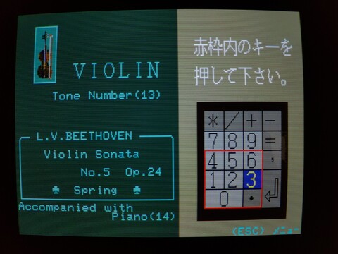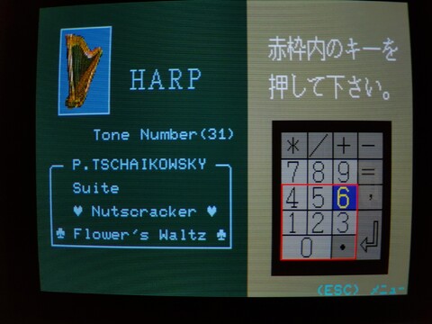 Third from this list is the FM sound synthesizer. It seems that the FM77 got its name from the fact that there are 77 instrument samples, and this demo highlights seven of them. The text is just a brief explanation of the utility.